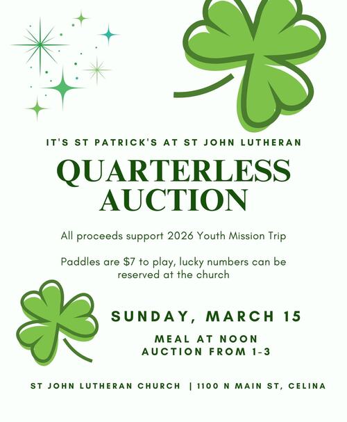 Visitation will be held Friday, April 10th from 4-8 pm and Saturday, April 11th from 10-11 am in the sanctuary at St. John Lutheran. The funeral service will begin at 11:00 am on Saturday, April 11th.